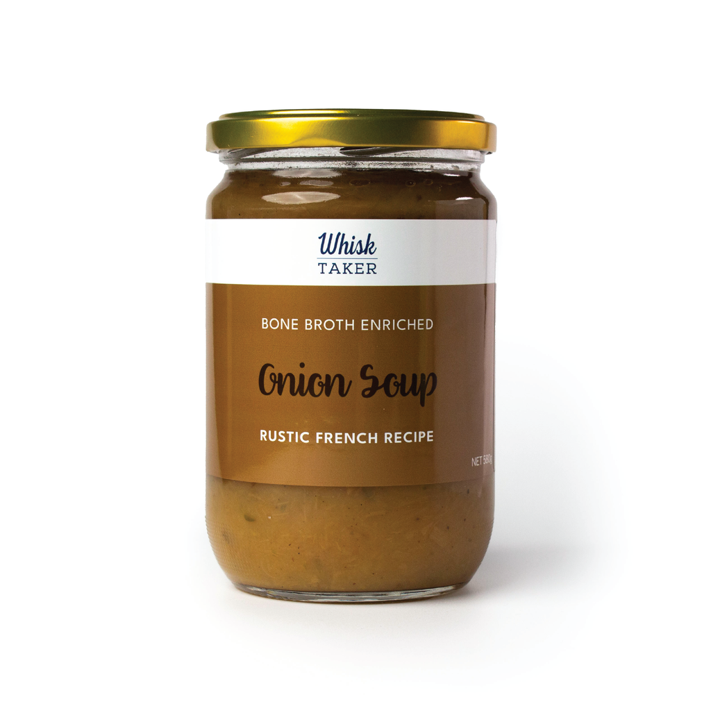 Whisktaker Onion Soup is our take on the classic French onion soup, slow-cooked to unlock the natural sweetness of caramelized onions and enriched with halal beef bone broth for deep, savory flavor. Inspired by rustic French kitchens, this soup delivers a rich “liquid gold” experience — comforting, nourishing, and full of warmth.